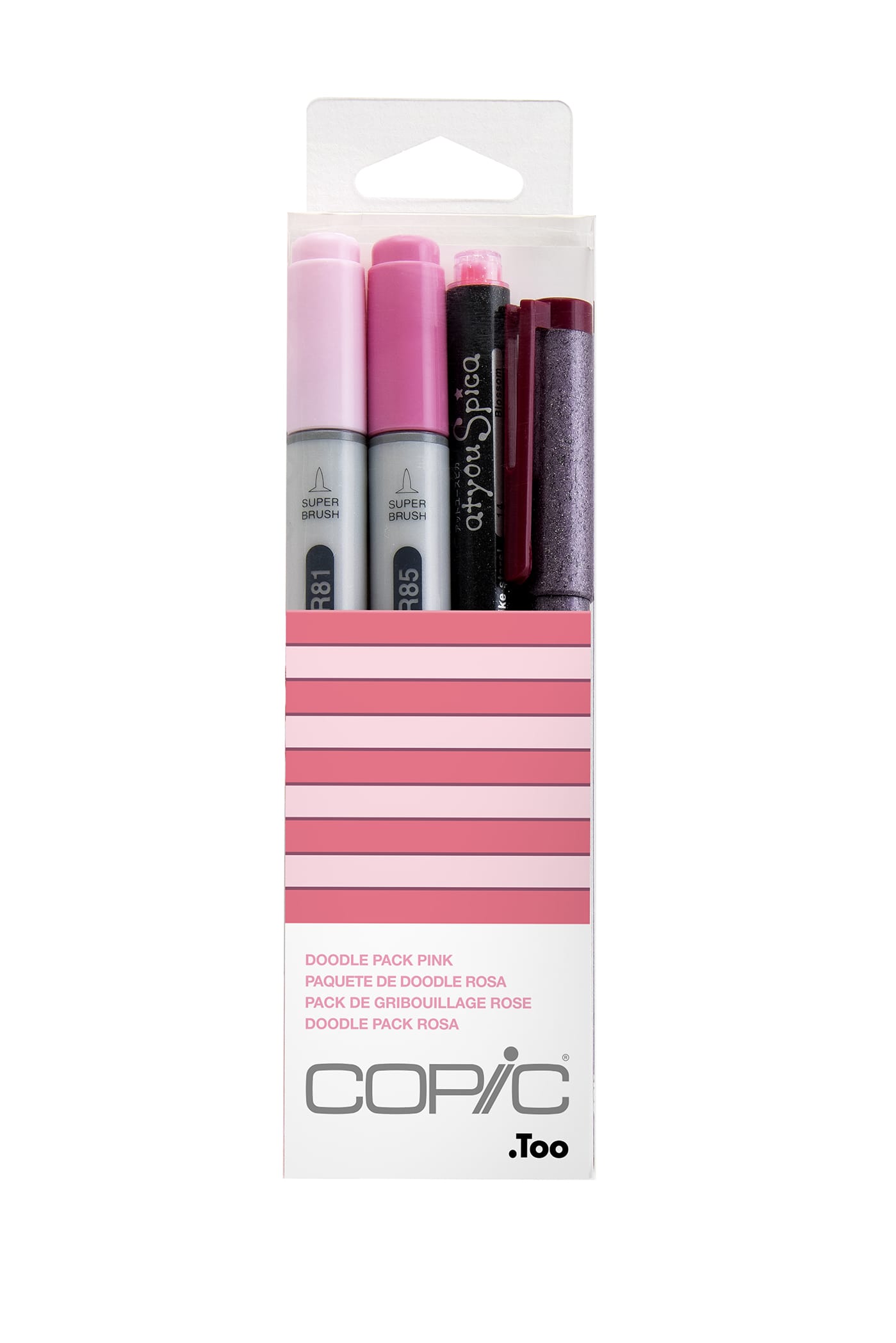 This COPIC® ciao Pink Doodle Kit includes 2 COPIC® ciao markers, 1 COPIC® Atyou SPICA Glitter Pen, and 1 COPIC® 0.3mm Multiliner pen. This set is designed and curated to help you practice blending and get used to using COPIC® products.