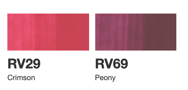 - COPIC® ciao Markers: Crimson RV29 and Peony RV69
