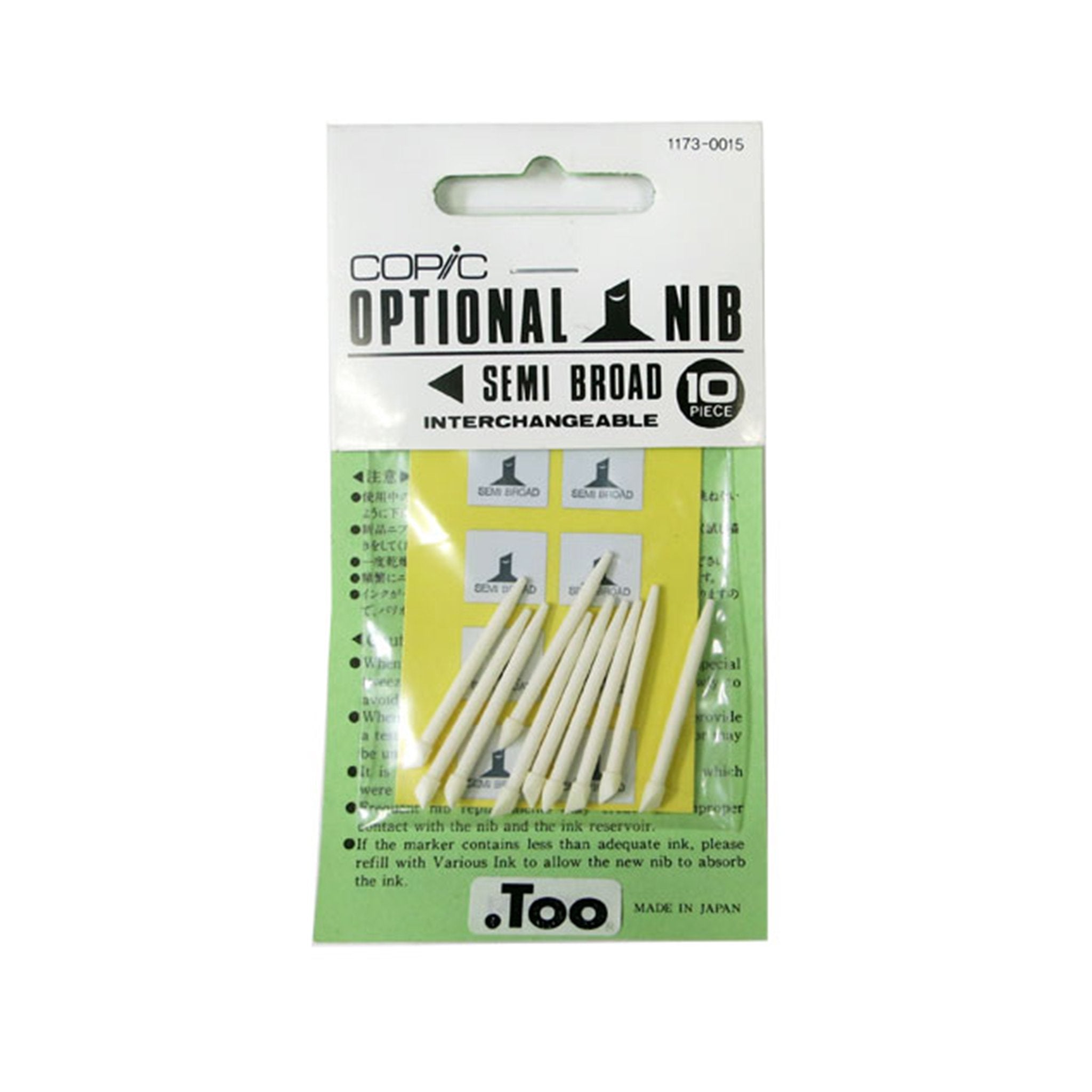 COPIC® Semi-Broad Replacement Nibs are exclusive to the COPIC® Classic marker. These nibs are the perfect choice for a medium-width chisel nib and create smooth lines in your creations. These interchangeable semi-broad nibs fit into the light grey end of Classic markers.