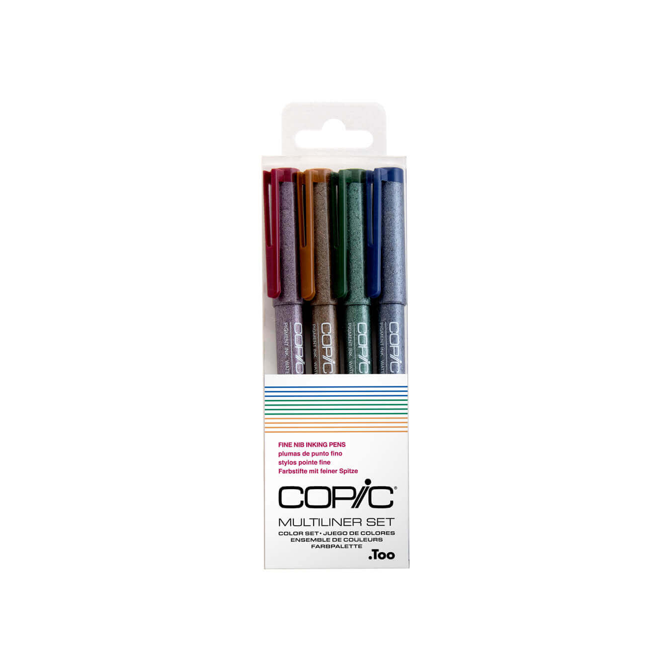 The COPIC® Multiliner Color 4PC Set is the perfect pen set for someone who draws and outlines a lot of different subject-matter and loves color or mixed media creations. It include COPIC® Multiliners in Sepia, Wine, Cobalt, and Olive pens in 0.3mm nibs and work well for fine detailing, crafting, writing, and illustrating.