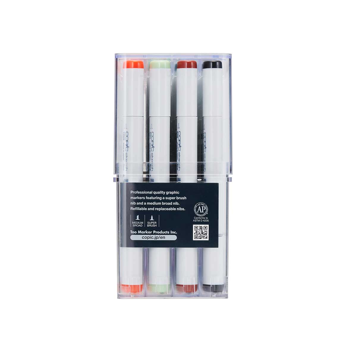 The COPIC® Sketch 72PC Marker Set (A) includes essential mid-tones, black colors, and grays for illustration, drawing, and design. With a well-rounded selection of popular vivid colors, blending shades, and essential grays, this set is essential for COPIC® Sketch collections for beginners and experts alike.