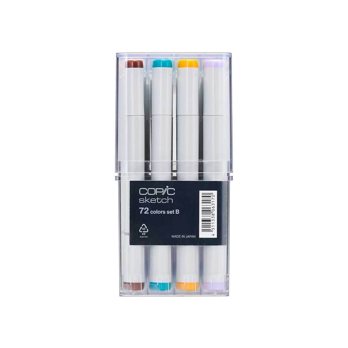 The COPIC® Sketch 72PC Marker Set (B) includes a well-balanced variety from every COPIC® color family, specially curated for illustrations, character drawings, and general design.
