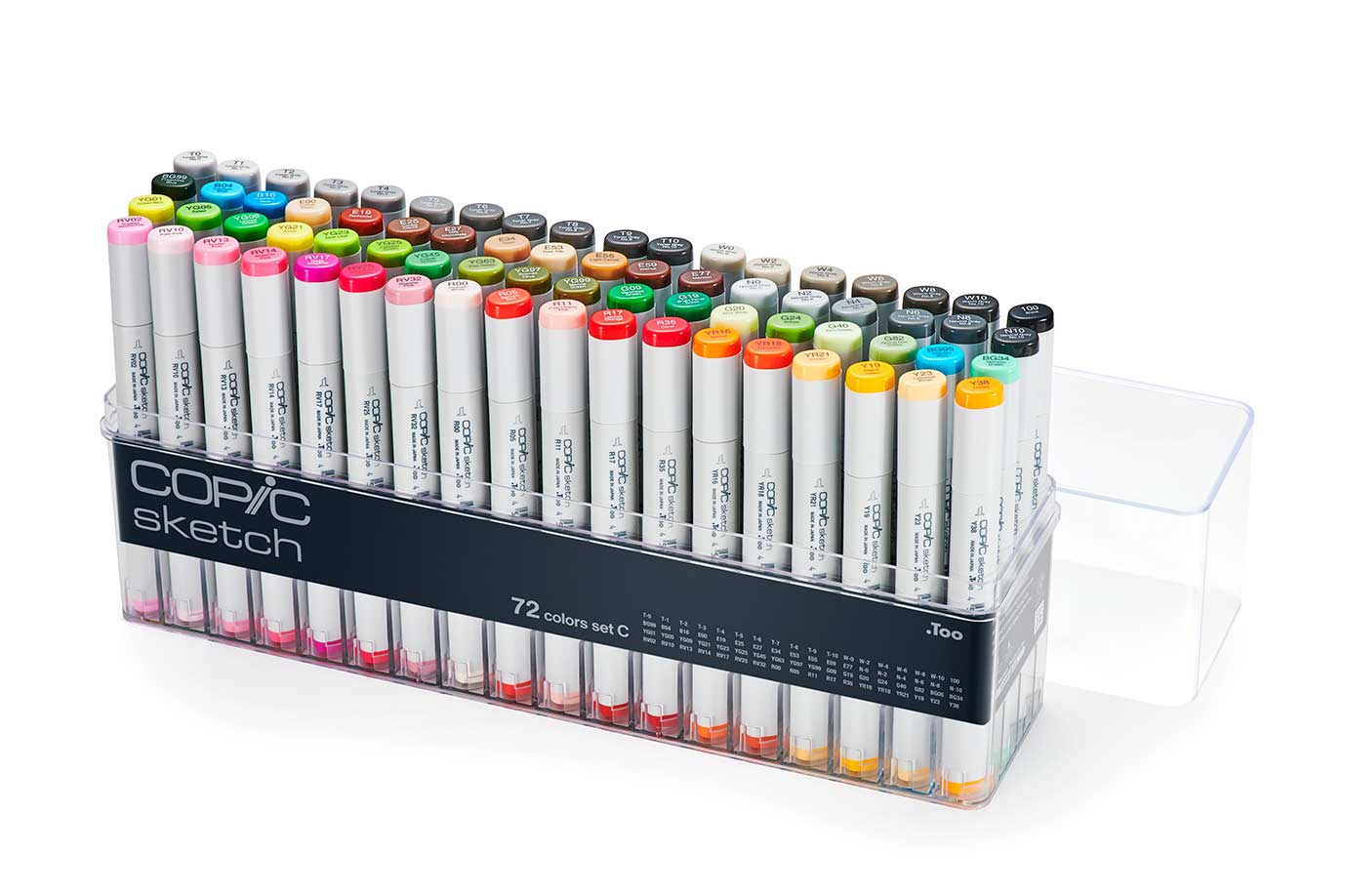 The COPIC® Sketch 72PC Marker Set (C) includes a rich selection of bright vivid colors and blending shades, making it an essential set for illustration and design.