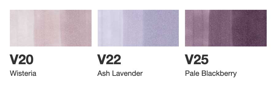 COPIC® Sketch Fusion 3PC #1 includes: Wisteria V20, Ash Lavender V22, and Pale Blackberry V25