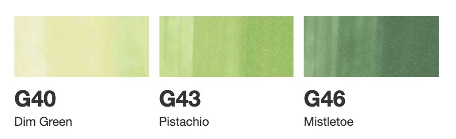 COPIC® Sketch Fusion 3PC #5 includes: Dim Green G40, Pistachio G43, and Mistletoe G46