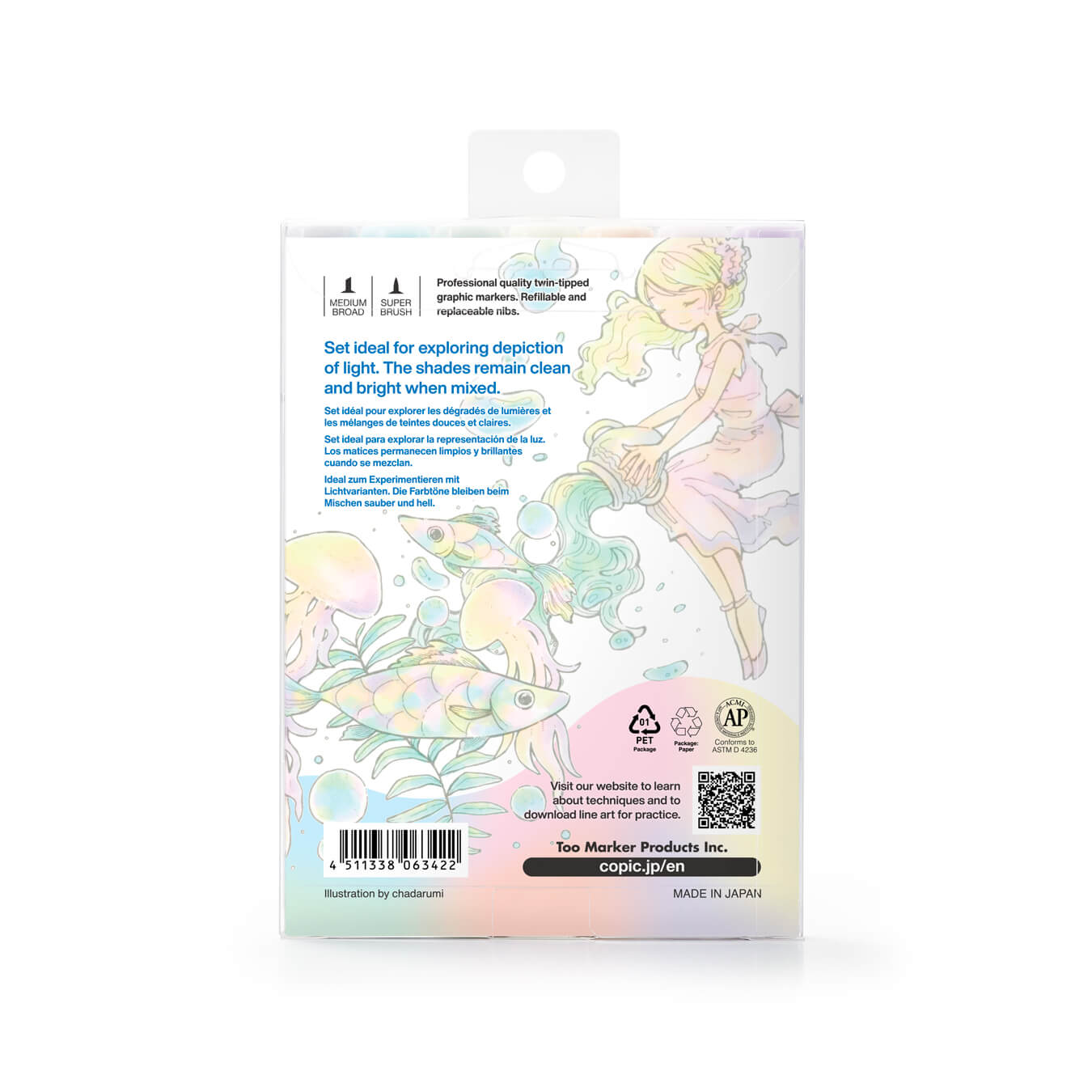 The COPIC® Sketch: Limited Edition Airy Tones 6+1 Set contains a special selection of the lightest tones from key COPIC® color families. The highly transparent shades allow for exploring depictions of light with layering and blending.